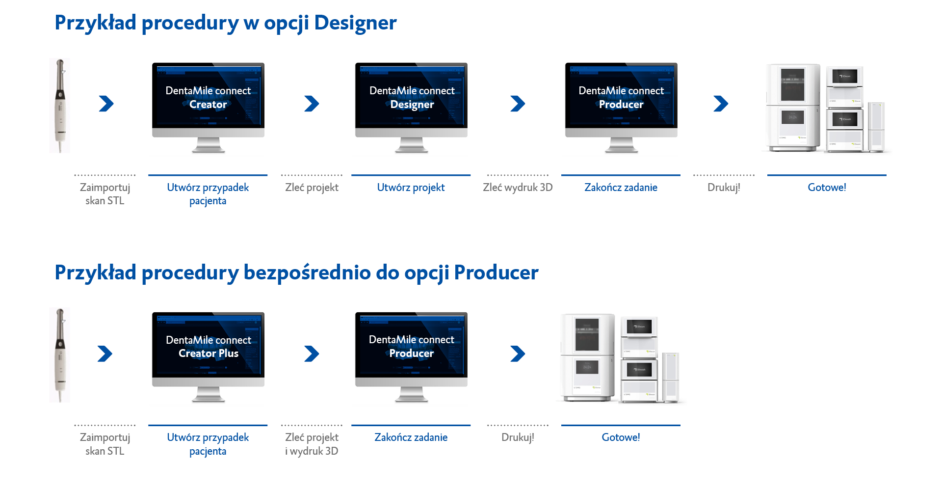 Projektuj, drukuj i zlecaj – możesz robić to wszystko dzięki różnym opcjom procedur w oprogramowaniu DentaMile connect.